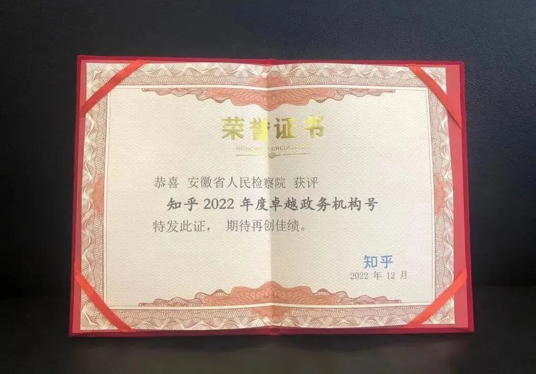 近日,知乎网络平台2022年度政务新媒体奖项揭晓,安徽检察知乎号获评“知乎2022年度卓越政务机构号”,成为全国检察系统7个获奖账号之一。
