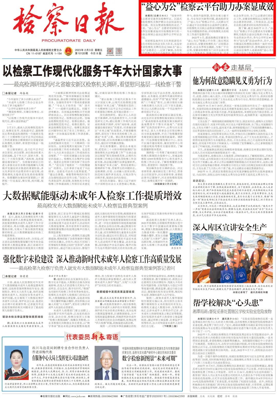 2023年2月3日《检察日报》报眼