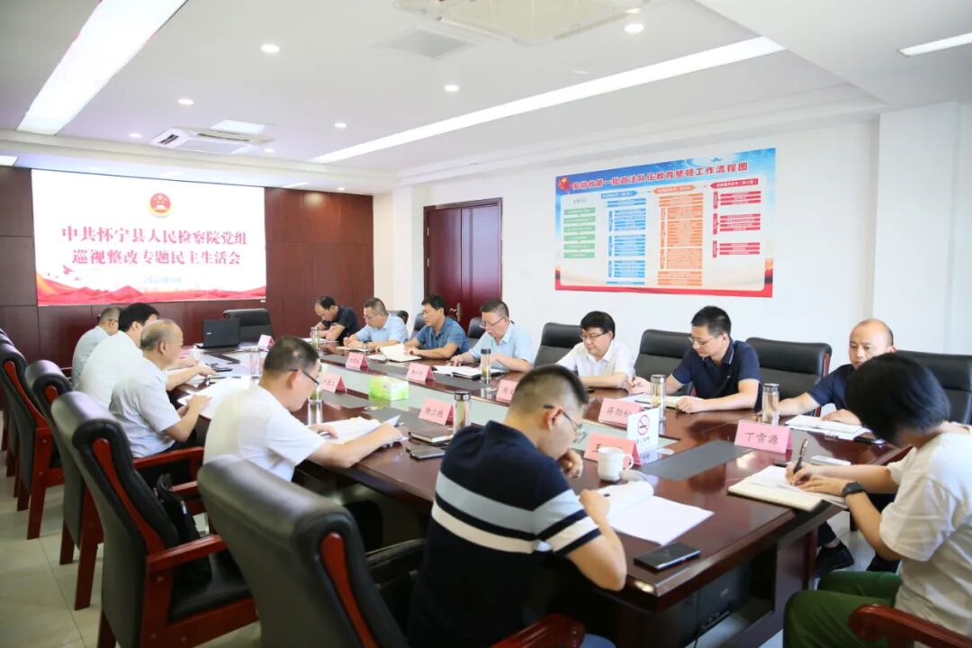 9月19日,怀宁县365体育投注官网_神器365软件下载_365bet苹果版召开巡视整改专题民主生活会,县人大常委会主任刘胜江,县委常委、政法委书记袁维锡,县纪委副书记、监委副主任杨立纯到会指导,院党组书记、检察长朱松涛主持会议。